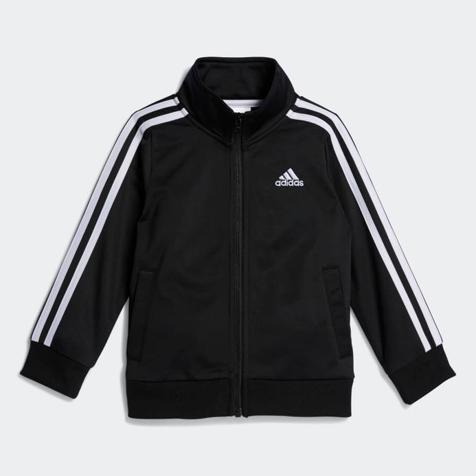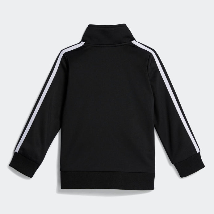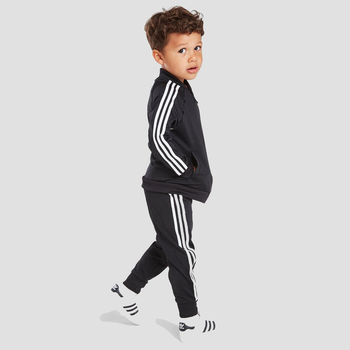Get them repping a timeless adi look with this infants' SS Tracksuit. In a black colorway, this downsized suit is built from smooth terry fabric for a sporty, retro look. It comes with a full zip track top and matching pants for the ultimate 3-Stripes fit. With long raglan sleeves and an elasticated waistband with Cord for a custom fit, this tracksuit is finished with contrasting 3-Stripes running down the sleeves and legs for a true adi finish.