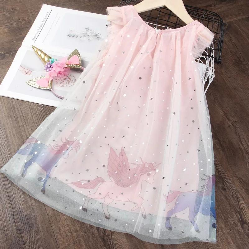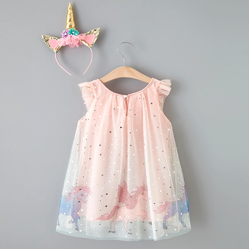 All Over Star Unicorn Rainbow Net Frock With Unicorn Hair Catch 2612