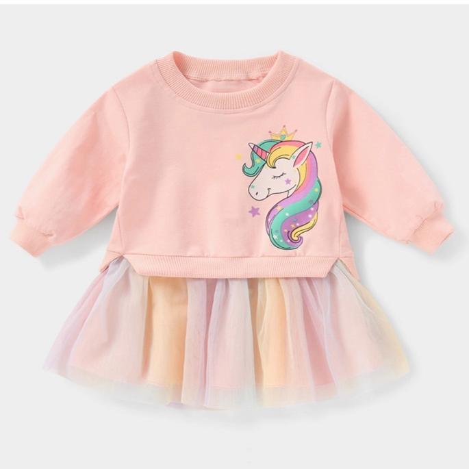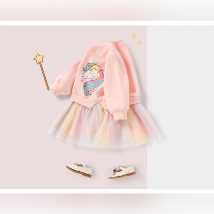 Anc Lal Multi Unicorn Light Pink Frock 3243