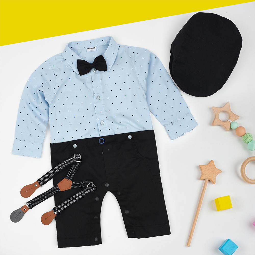 B.B Polk Dost Blue Top 4 Piece Set With Bow , Gallance & Cap 10293