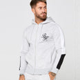 B&H Black and White Stripe Sleeves Grey Zipper Hoodie 3047