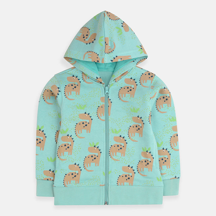 B.X All Over Dino Print Blizzard Blue Zipper Hoodie 7970