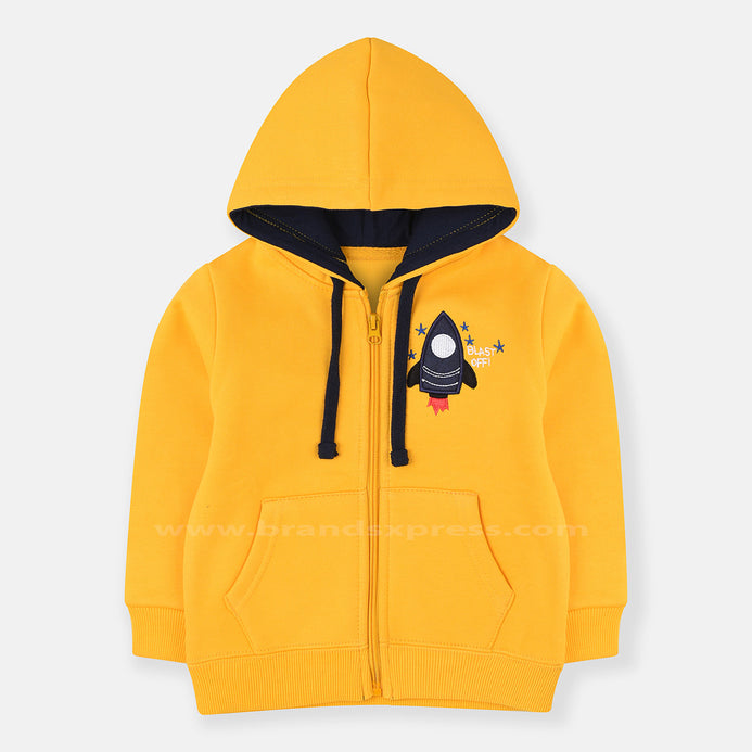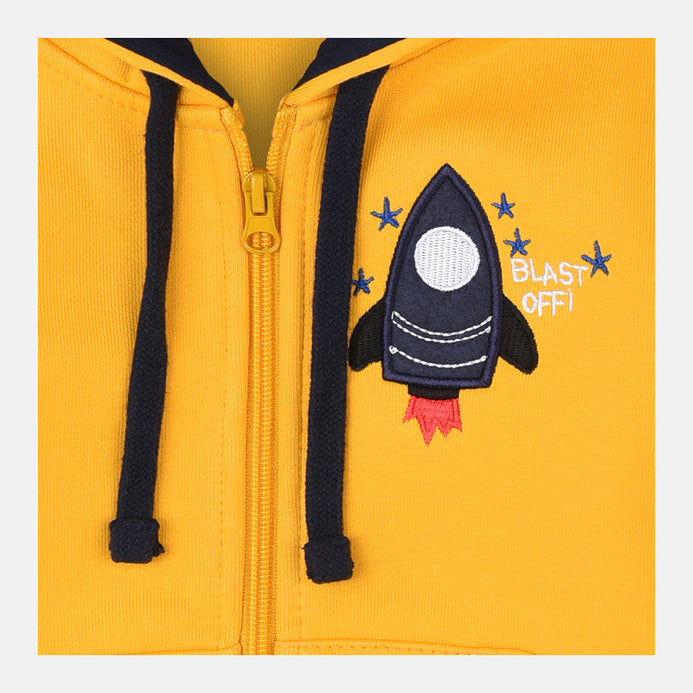 B.X Blast Off Embroidered Rocket Yellow Fleece Zipper Hoodie 8510