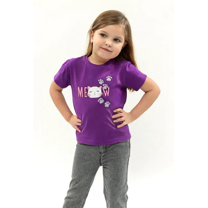 B.X Glitter Paw Meow Printed Purple Tshirt 7074