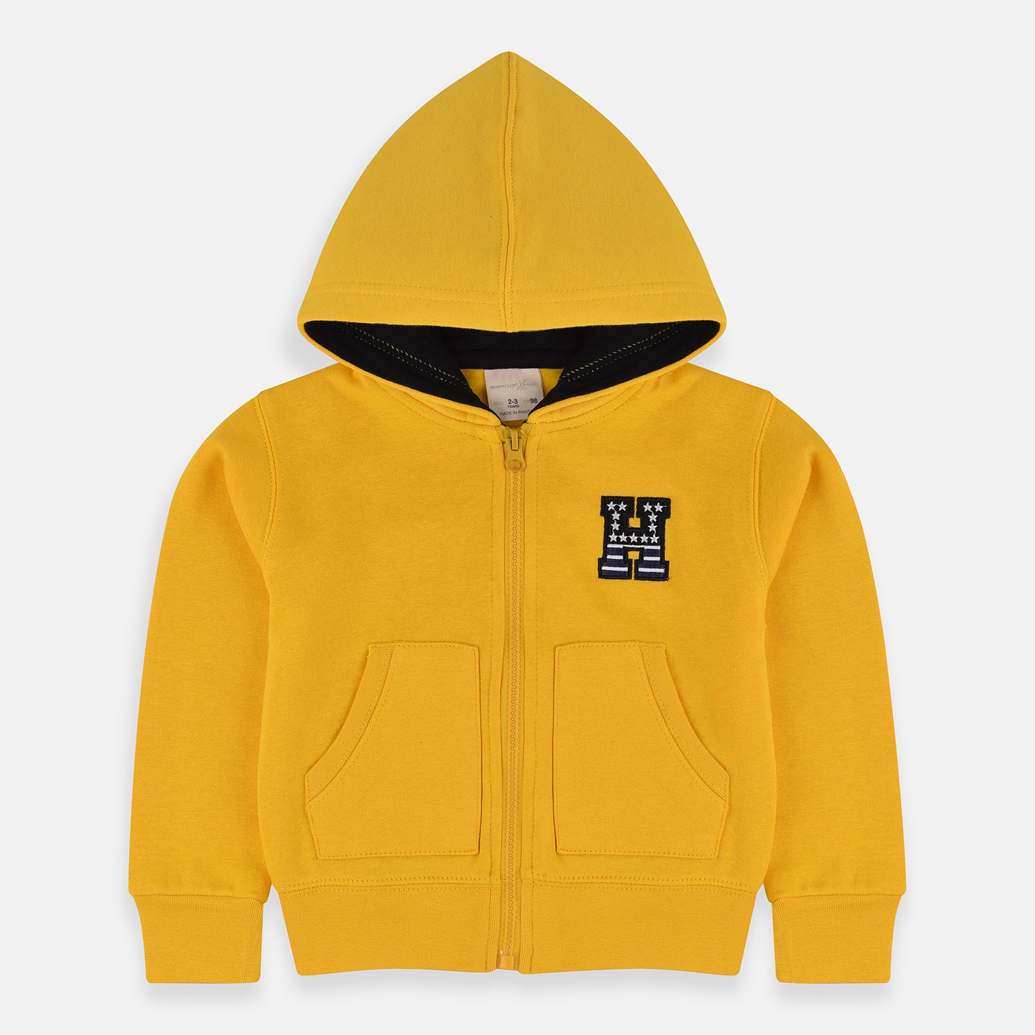 B.X H Embroidered Yellow Zipper Hoodie 3426