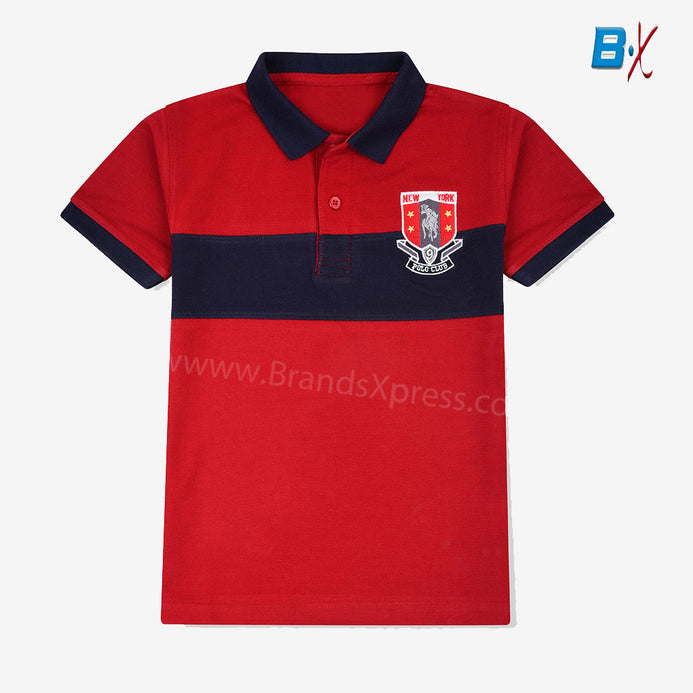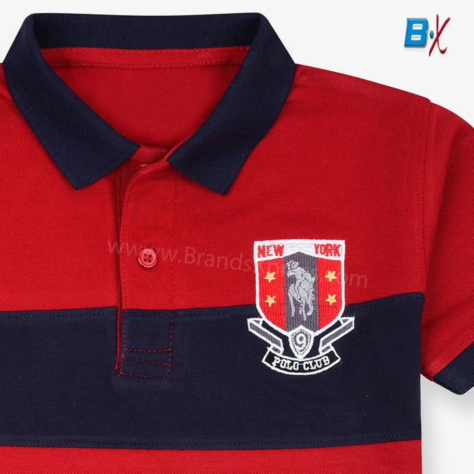 B.X New York Badge Maroon & Navy Blue Polo 9521