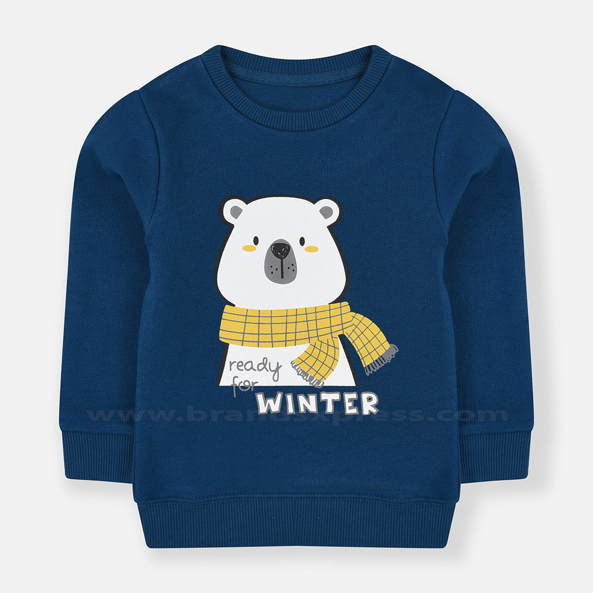 Junaid Shafiq B.X Ready For Winter Bear Print Teal Blue Sweatshirt 8488