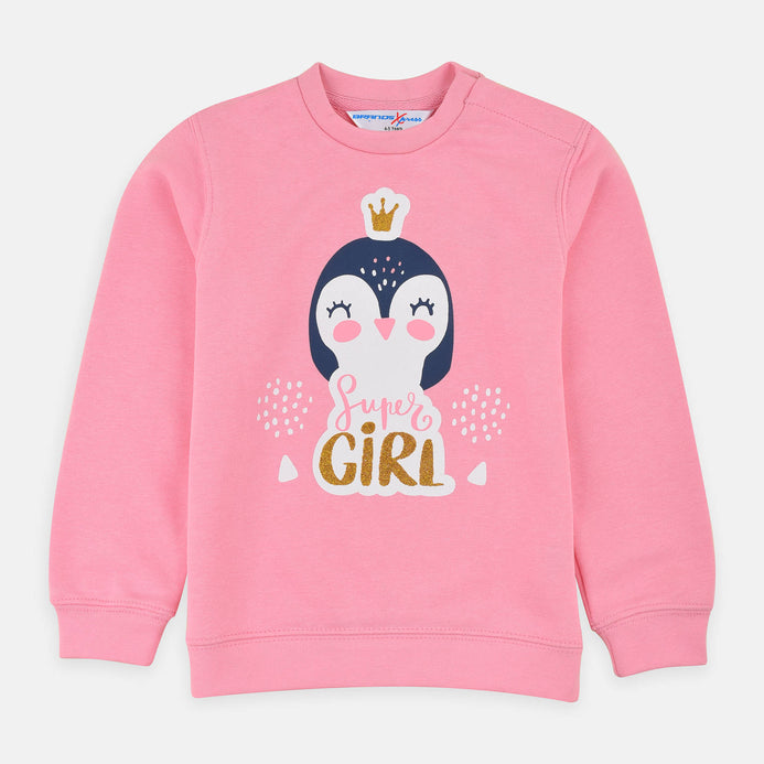 Azeem Arif B.X Super Girl Glitter Penguin Pink Sweatshirt 2908