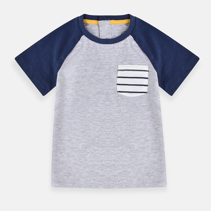 Bab Clb Contrast Pocket Raglan Grey Tshirt 3938