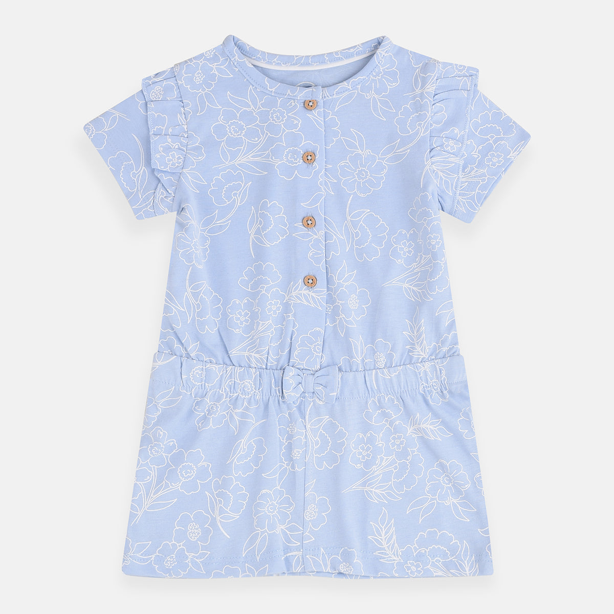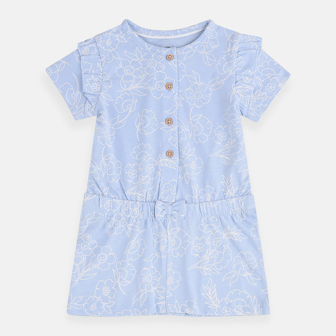 Bab Clb Front Button Style Flower Print Soft Blue Frock 3874