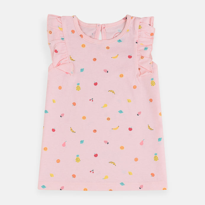 Bab Clb Fruit Print Frill Sleeves Pink Top 3881