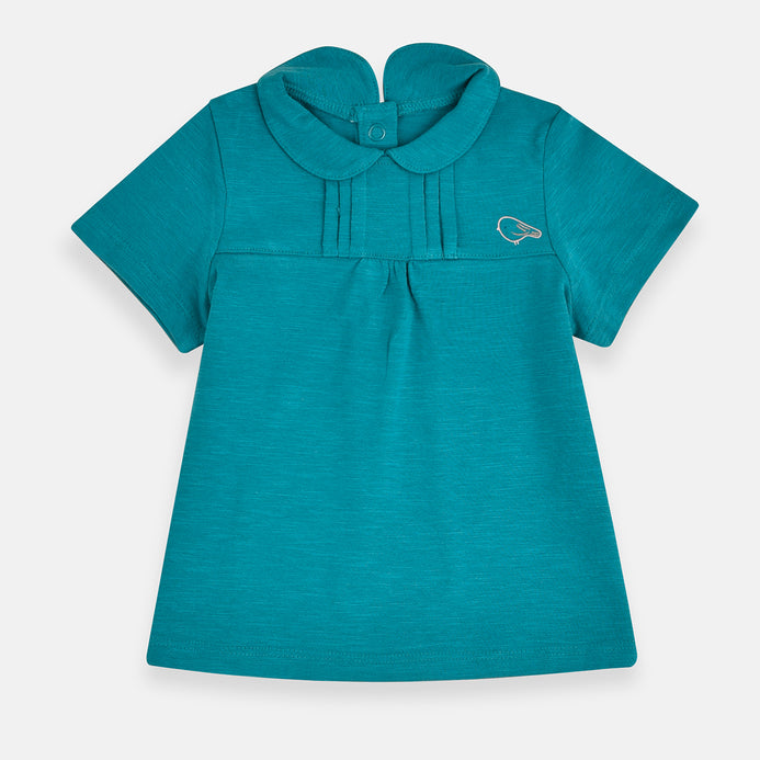 Bab Clb Glitter Bird Print Teal Collar Top 4067