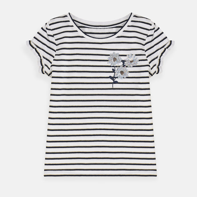 Bab Clb Sequence Flower Glitter Stripes White Top 3864