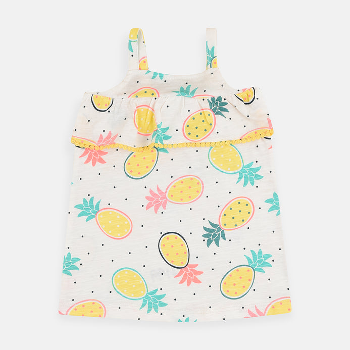 Bab Clb Shoulder Stripe Pineapple Print White Top 3952