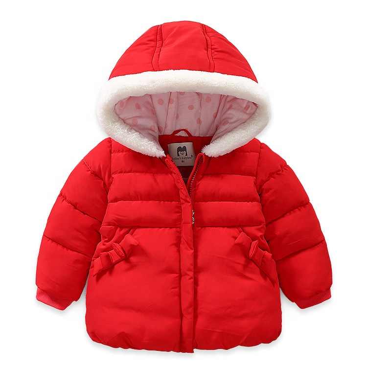 Mothers Baby Bear Fur Piping Hoodie Red Puffer Jacket 3246