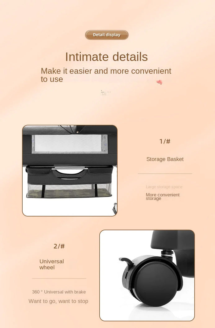 Baby Bedside Crib With Easy Folding and Height Adjustment 11275
