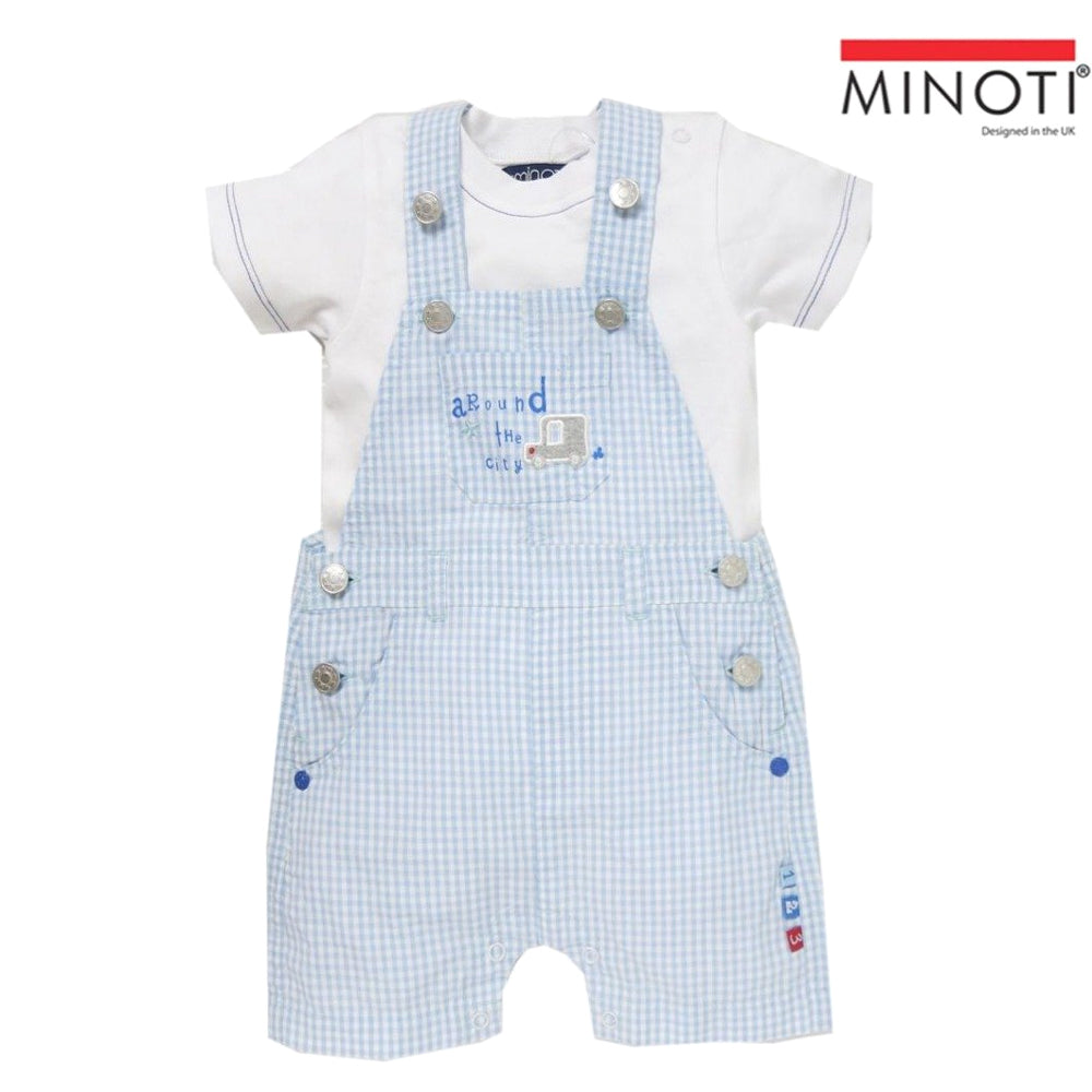 BBL Light Blue Check Dungaree 2 Piece Set with White Body suit 2085