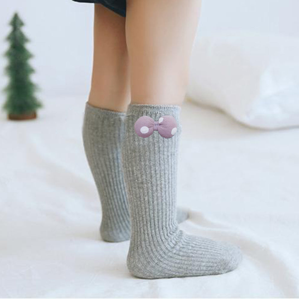 BBW Polka Dots Bow Style Grey Long Socks 12534