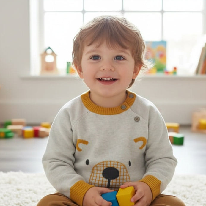 BC Bear Face Side Button Styles Light Grey Sweater 14417