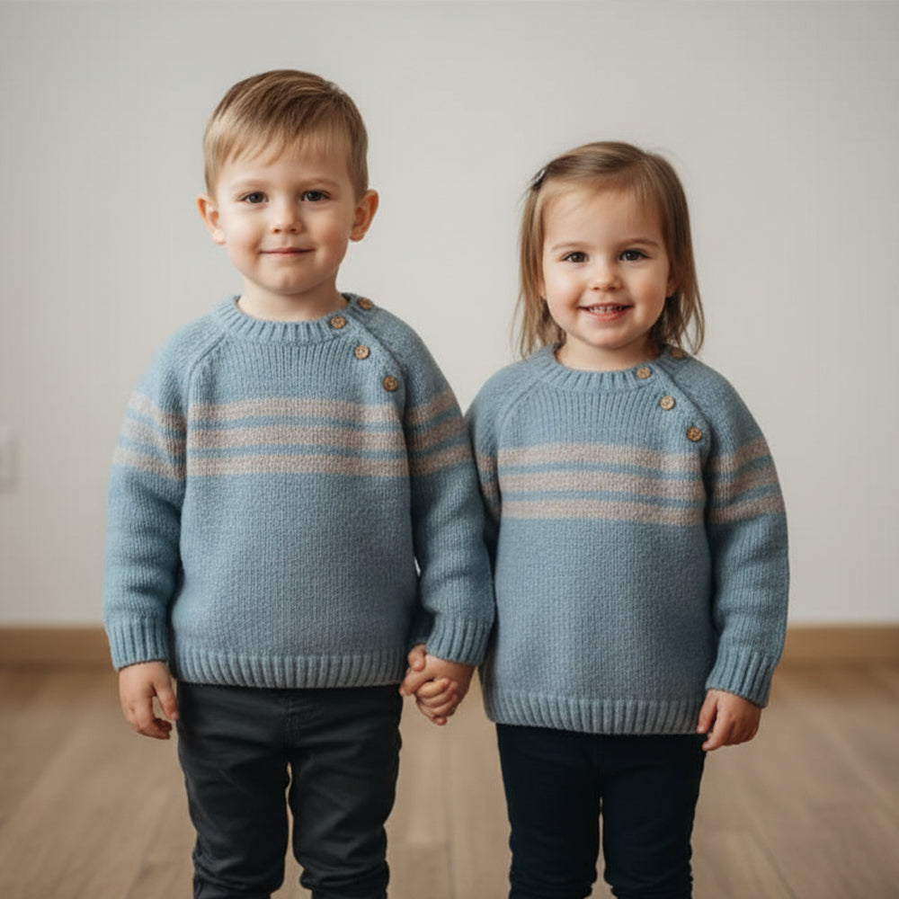 BC Stripes Penal Front Side Button Blue Sweater 14395
