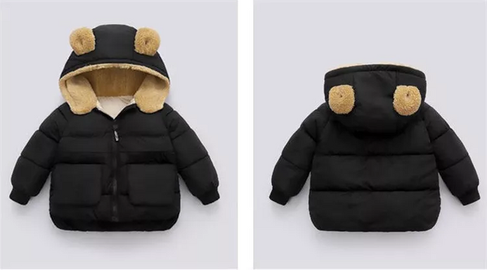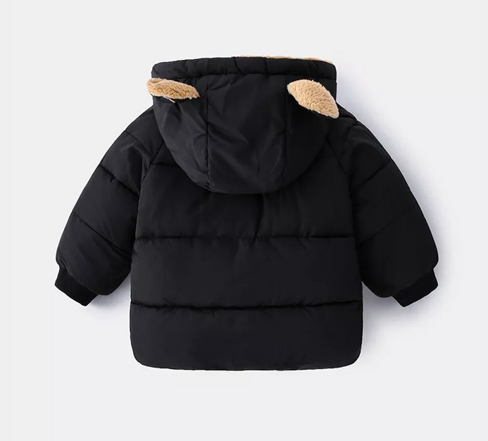 Best C Sherpa Bear Hooded Black Puffer Jacket 7639