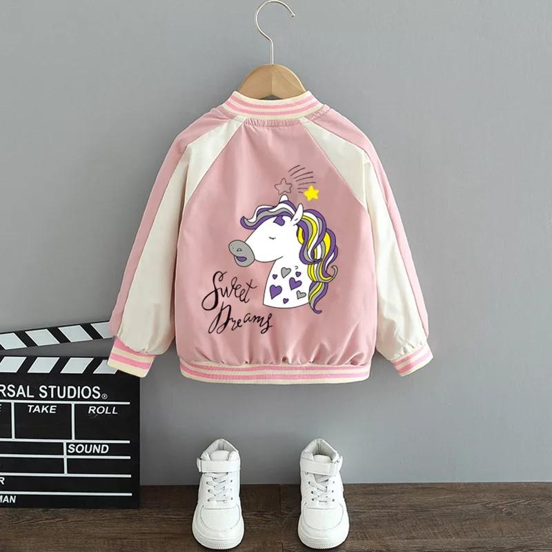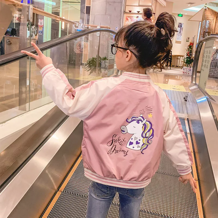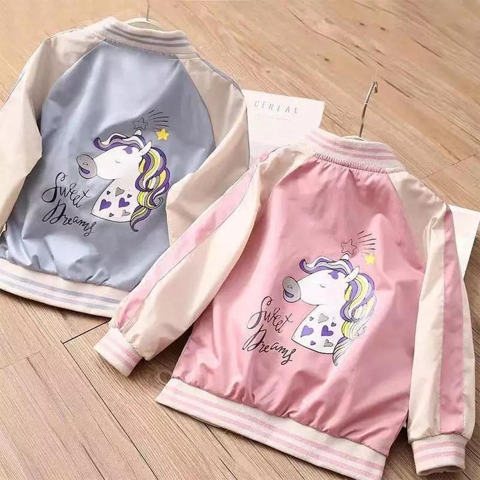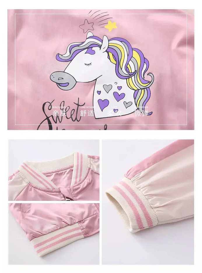 BKT Sweet Unicorn Print Mock Neck Light Weight Pink Zipper 7669
