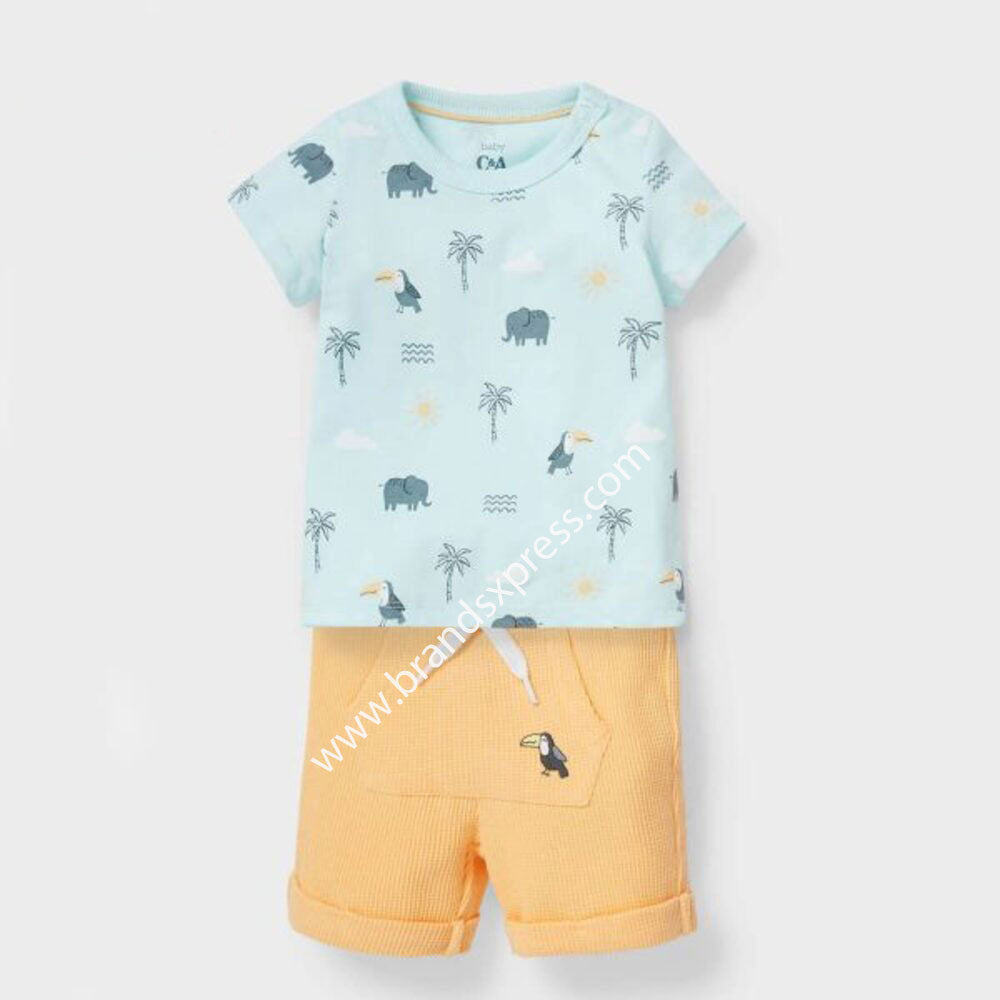 CA Printed Beech Aqua Blue T-Shirt & Shorts Set 8802