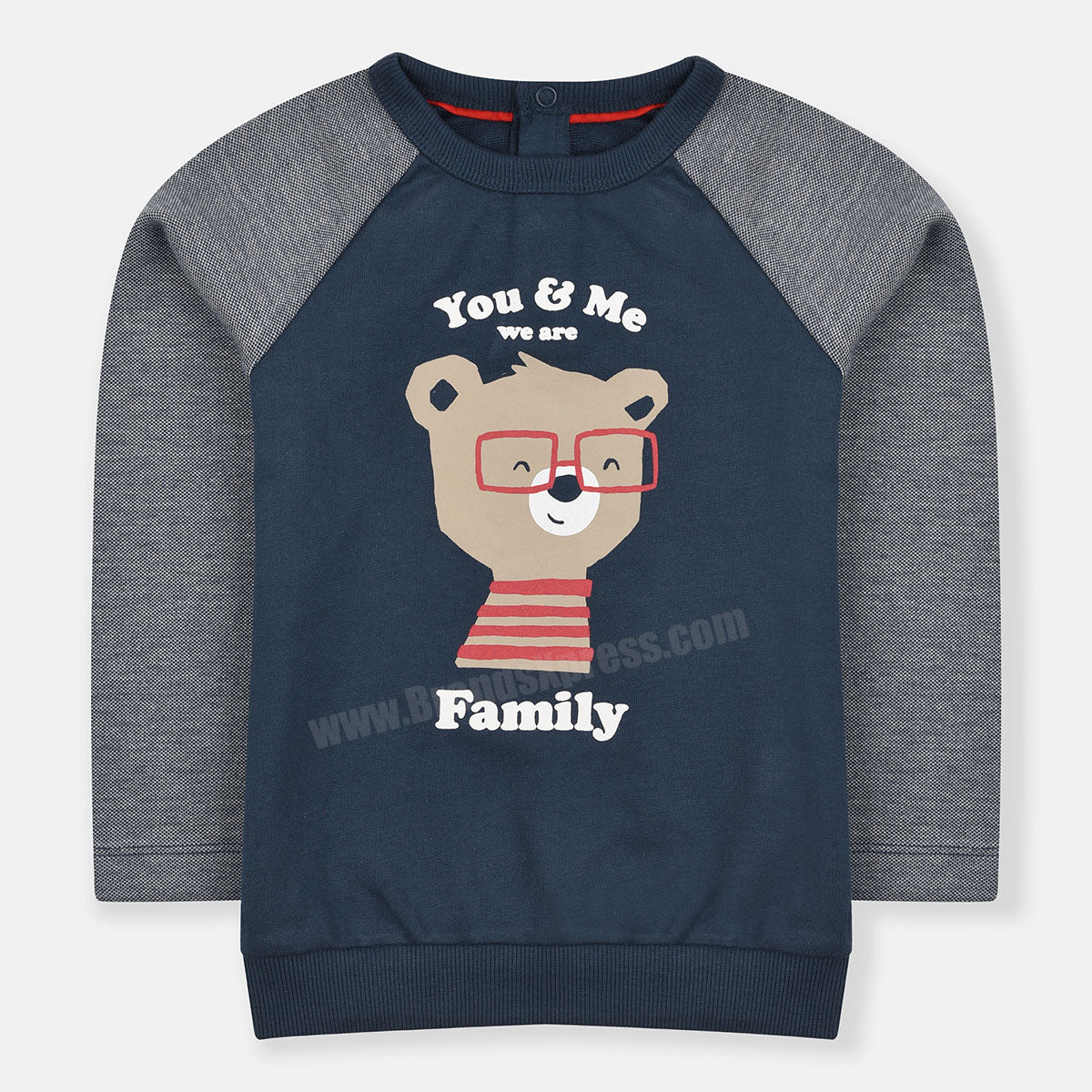 CA We are Family Bear Print Raglan Sleeves Blue Sweatshirt 9776