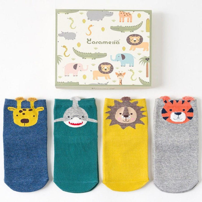 Caramella Jungle Animal Green 4 Socks Box 3230