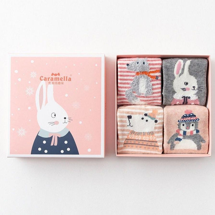 Caramella Rabbit Pink 4 Socks Box 3235