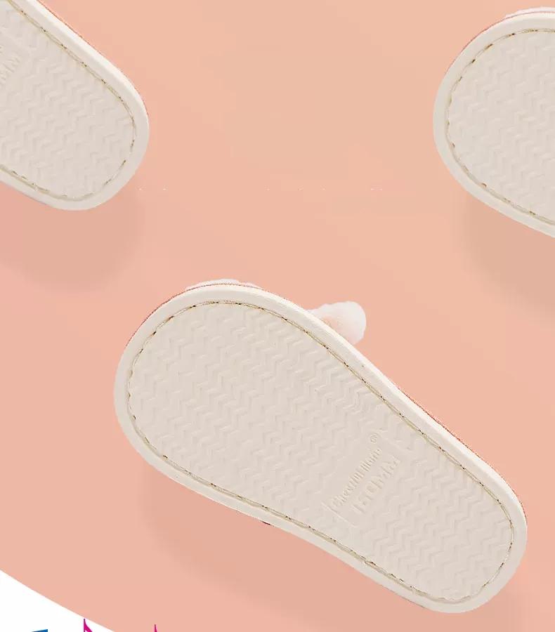 CM Aplic Bunny Face Elastic Grip Peach Warm Slippers 8153