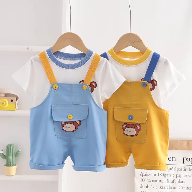 CN Bear Print Mustard Dungaree With White T-Shirt 2 Piece Set 10814