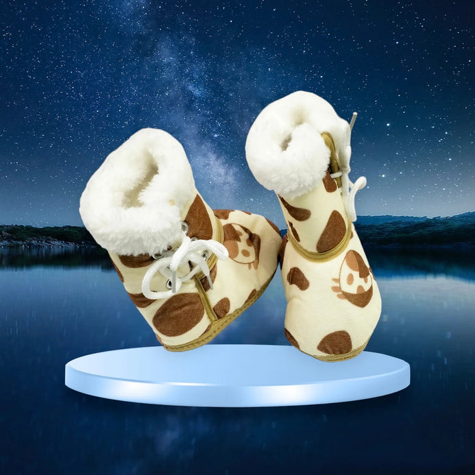CN Giraff Print Dots Warm Quilted Cream Fleece Soft Bottom Shoes 12603
