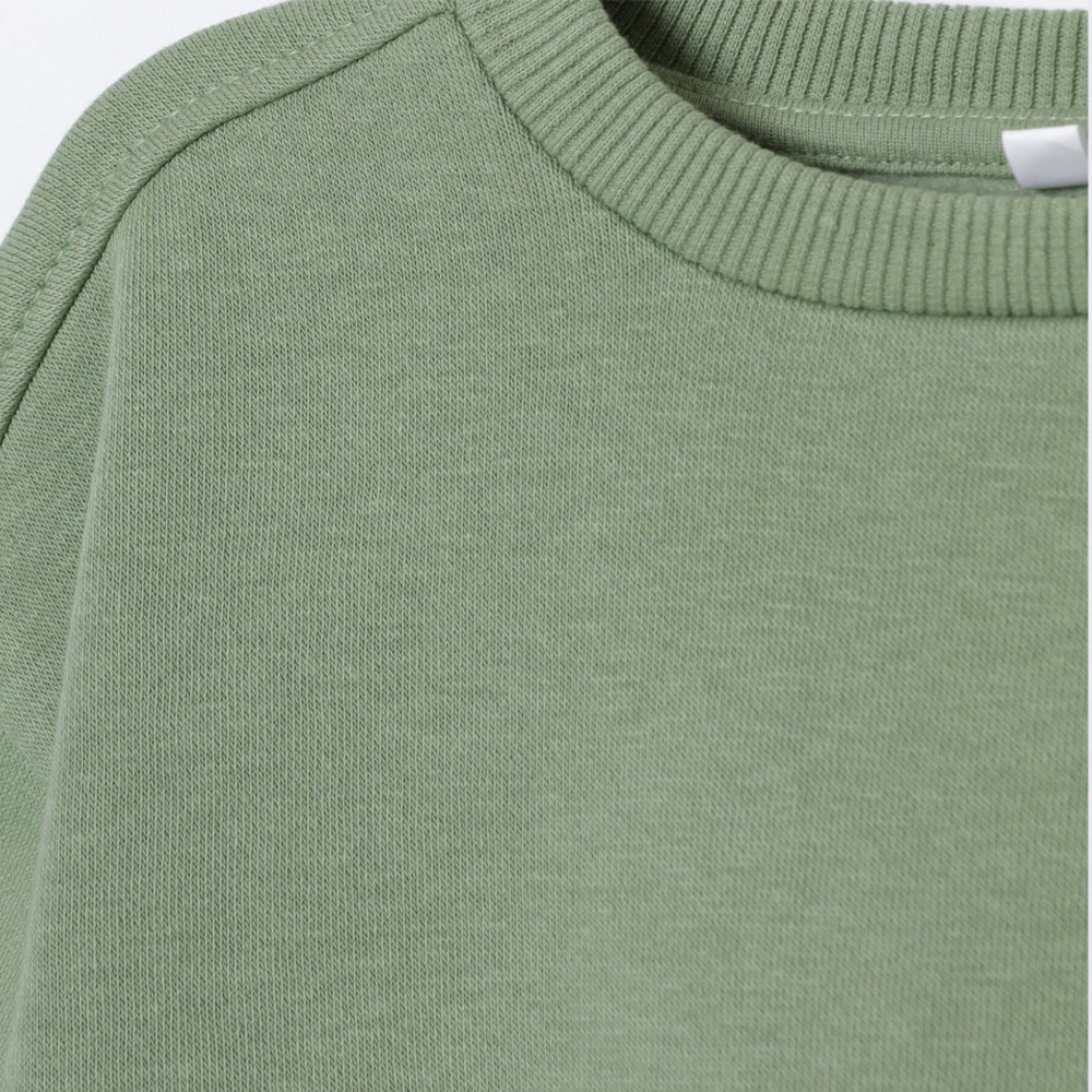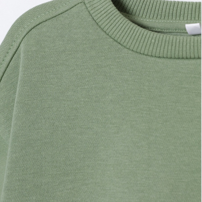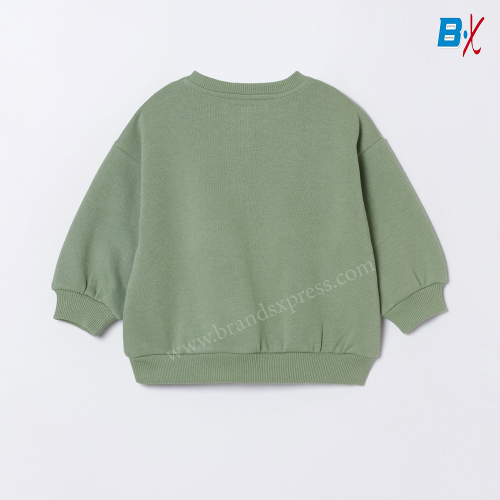 SFR Glitter Heart Down Shoulder Apple Green Short Fleece Sweatshirt 9931
