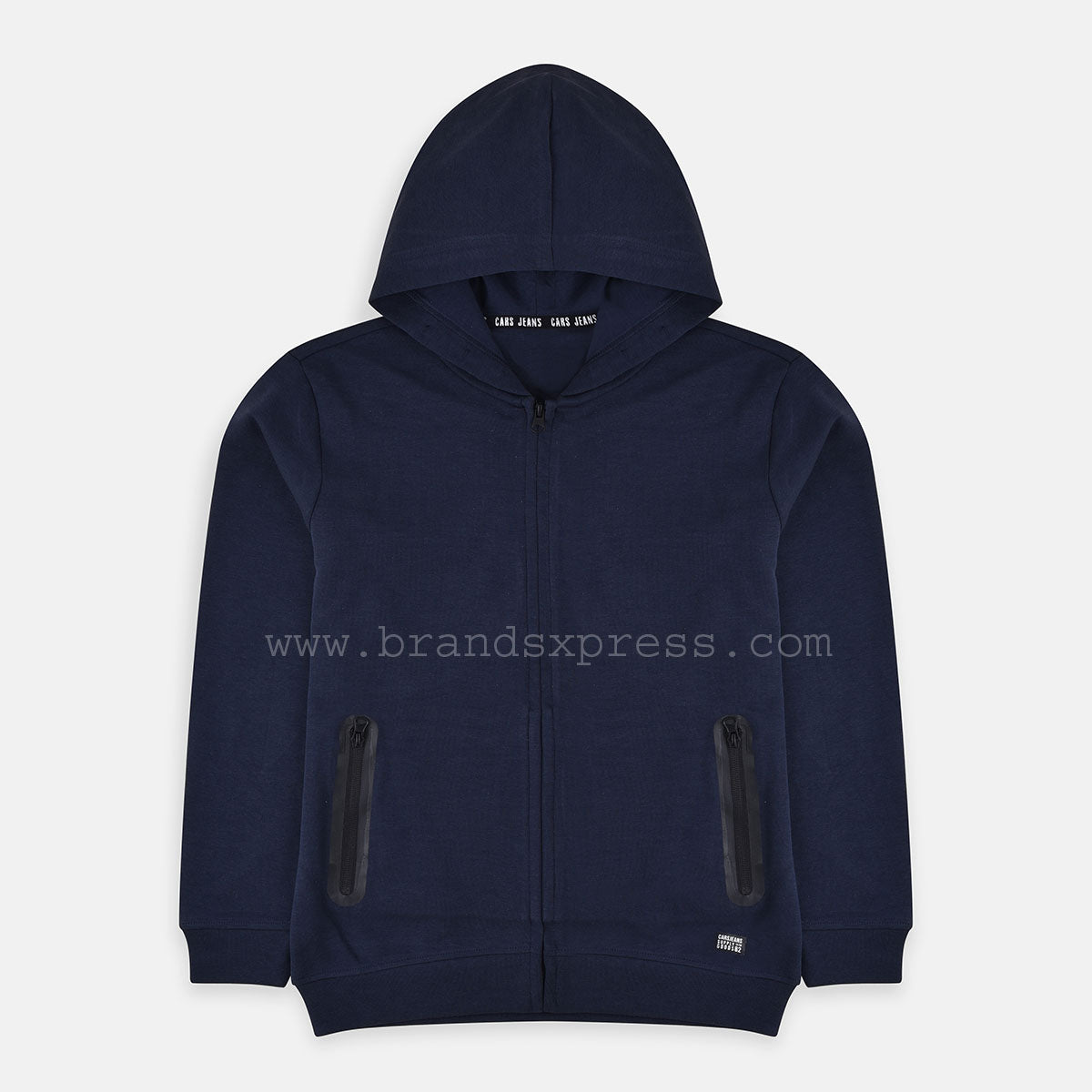 CJ Style Zip Pocket Dotted Cord Navy Blue Zipper Hoodie 3159