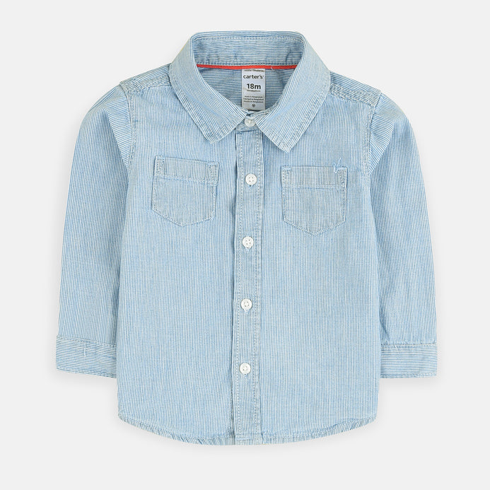 CRT Denim Wash Double Pocket Blue & White Stripe Full Sleeves Casual Shirt 3860
