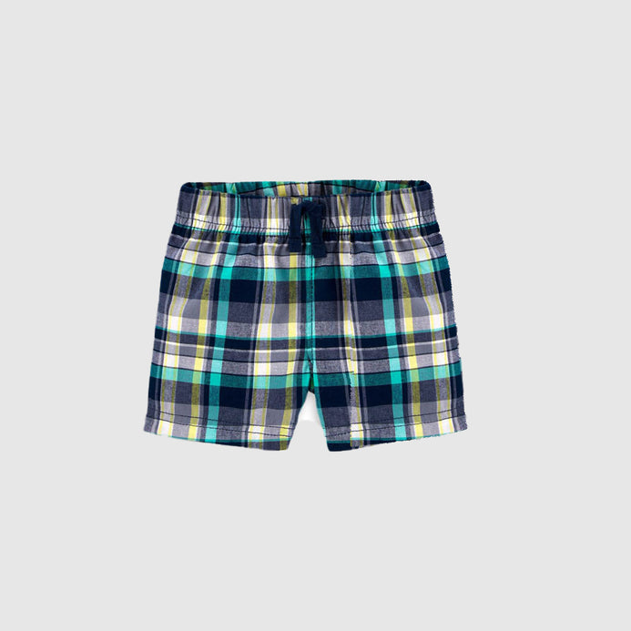 CRT Navy Blue & Turquoise Check Cotton Shorts 3986