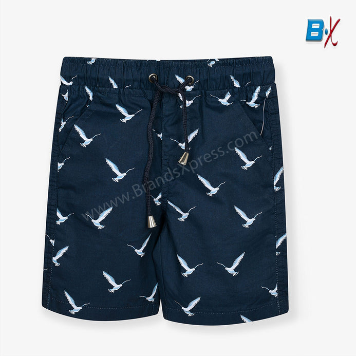 CRT Pigeon Bird Print Navy Blue Cotton Shorts 9138