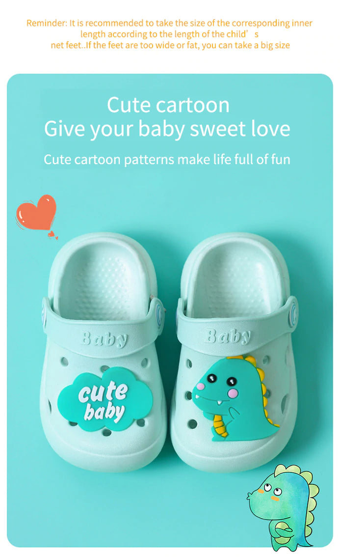 Cute Baby Dino badge Pastel Green Clogs 9411