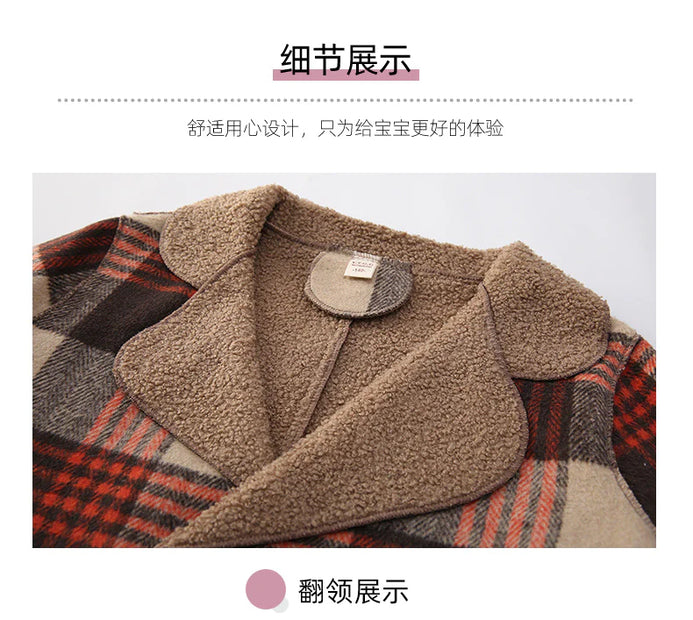 Cute Kids Red & Brown Check Woolen Inside Warm Coat 10526