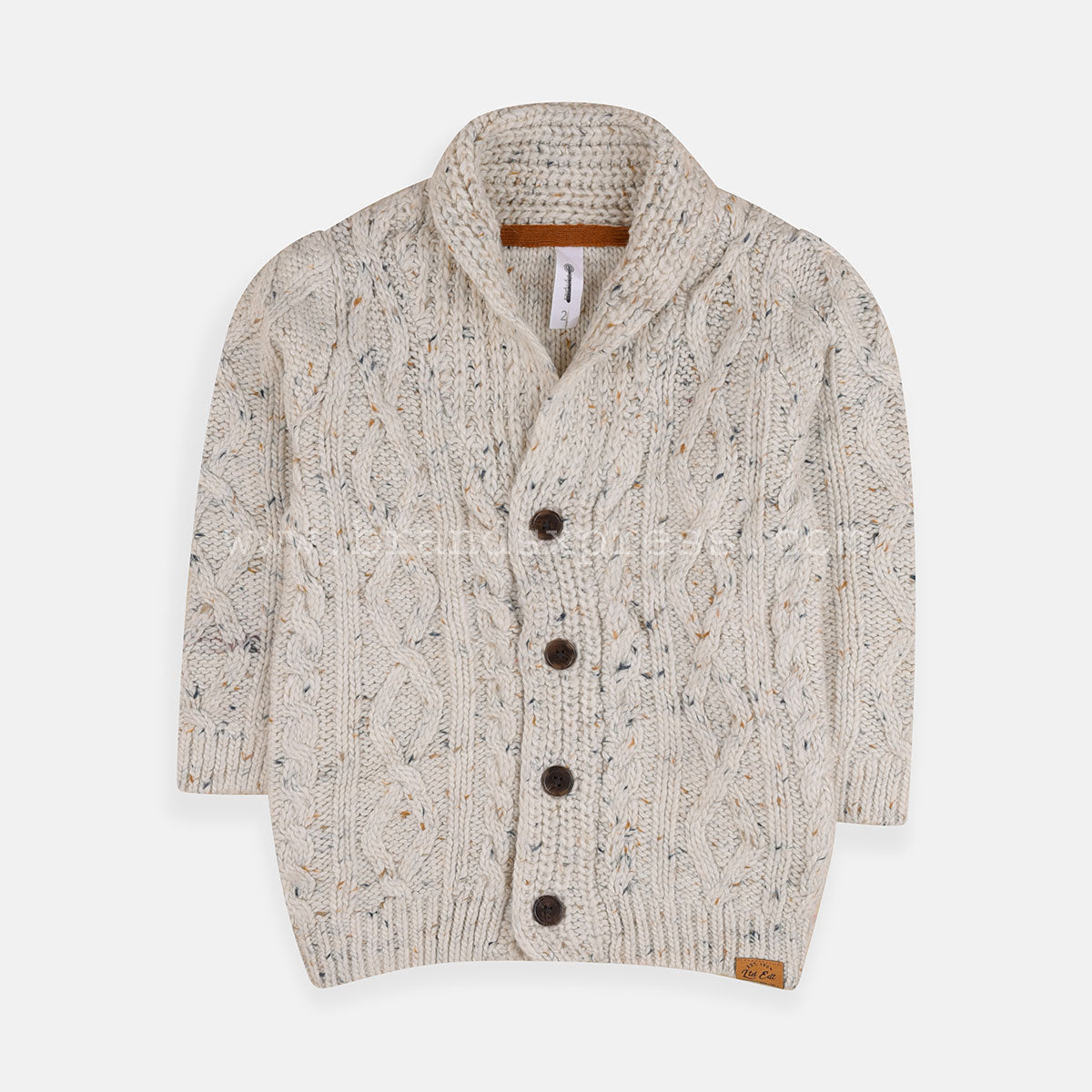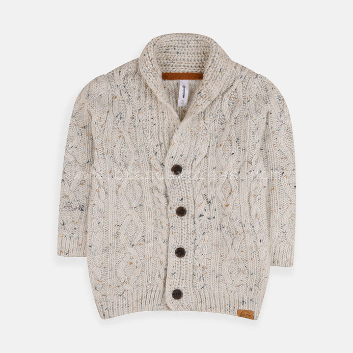 DPL Style Neck Multi Slub Knitted Off-White Cardigan 7687
