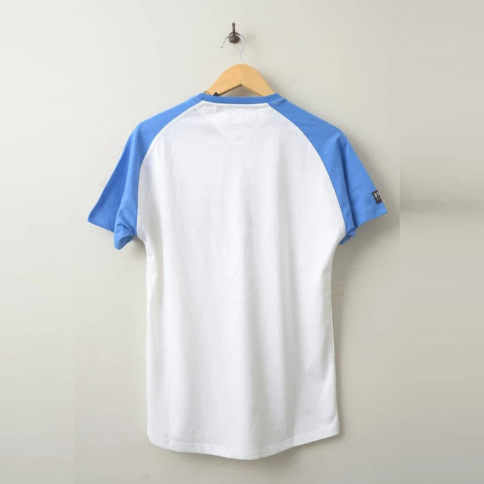 DSL Mid Blue Raglan Sleeves White Tshirt 1783