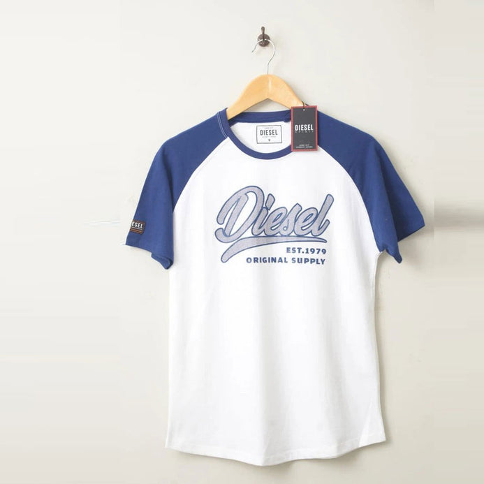 DSL Navy Blue Raglan Sleeves White Tshirt 1782