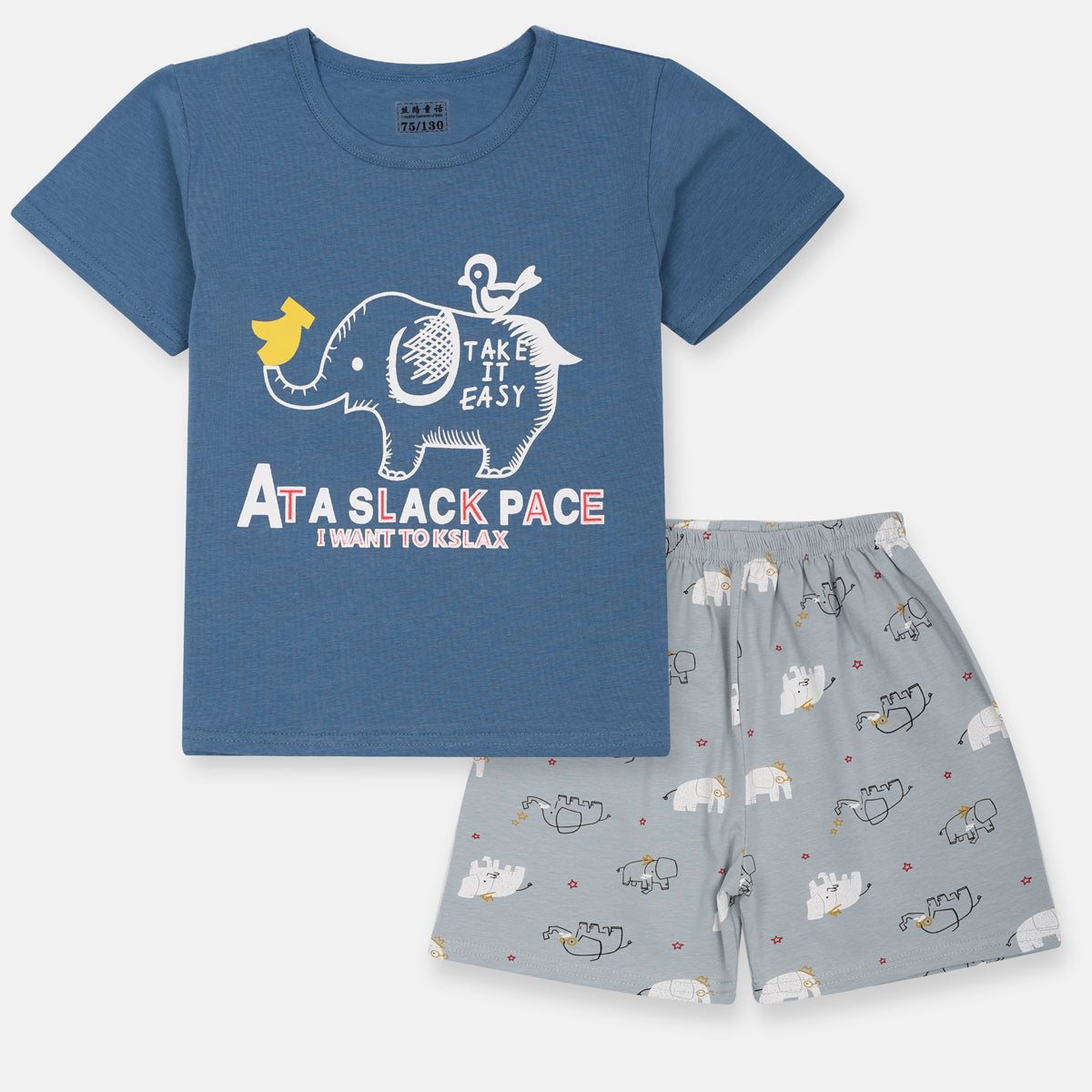 EGB Take It Easy Elephant Codet Blue Shorts 2 Piece Set 9657
