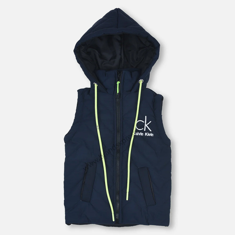 Embroided Quilted Navy Blue Sleeveless Jacket 11924