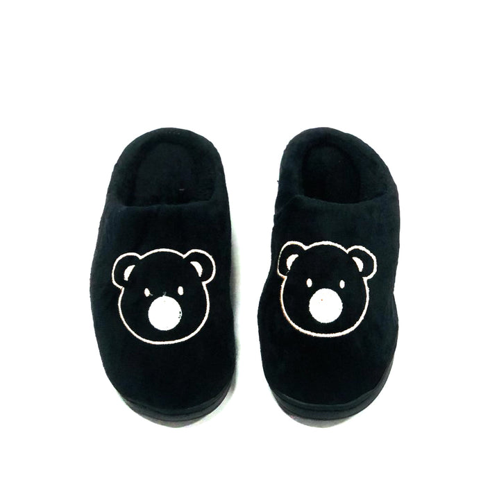 Embroidered Bear Face Warm Black Winter Slippers 8329