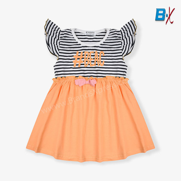 ENT HBEAC Stripes Chest & Plain Bow Orange Frock 8946