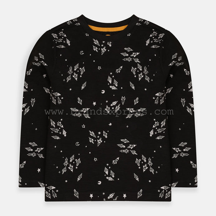 F&F All Over Rocket & Space Ships Black Full Sleeves Tshirt 7606