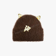 Fashion Hats Cat Aplic Dark Brown Rabbit Fur Warm Cap 10587-A