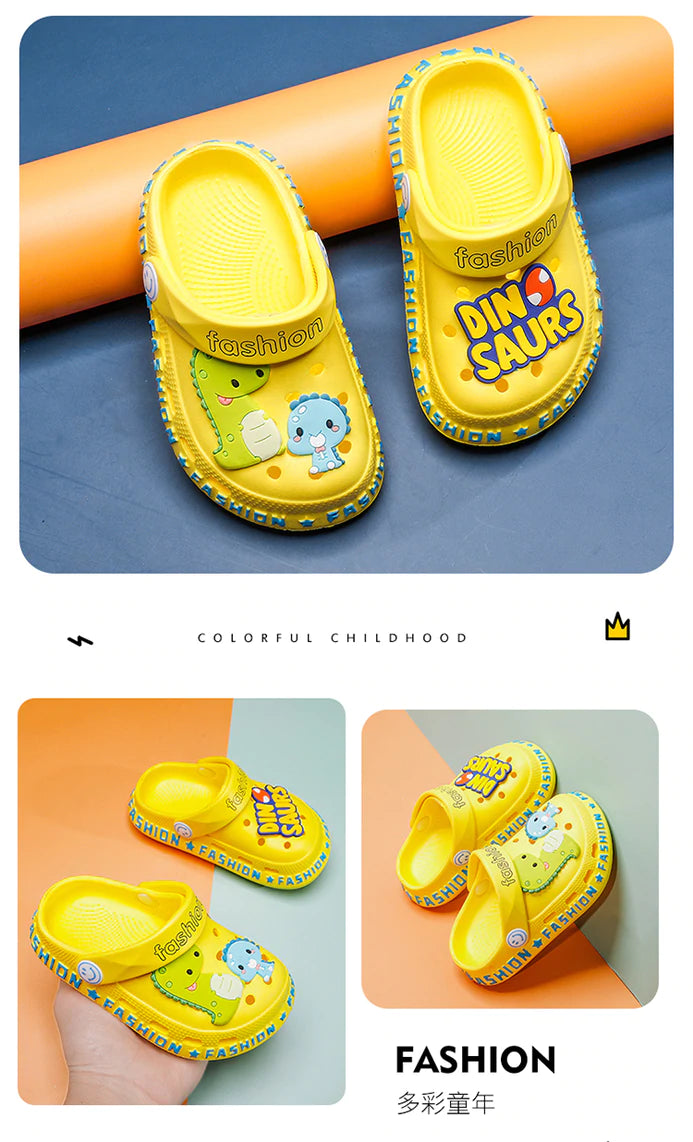 Fashion Side Print Dinosaurs Yellow Clogs 9390